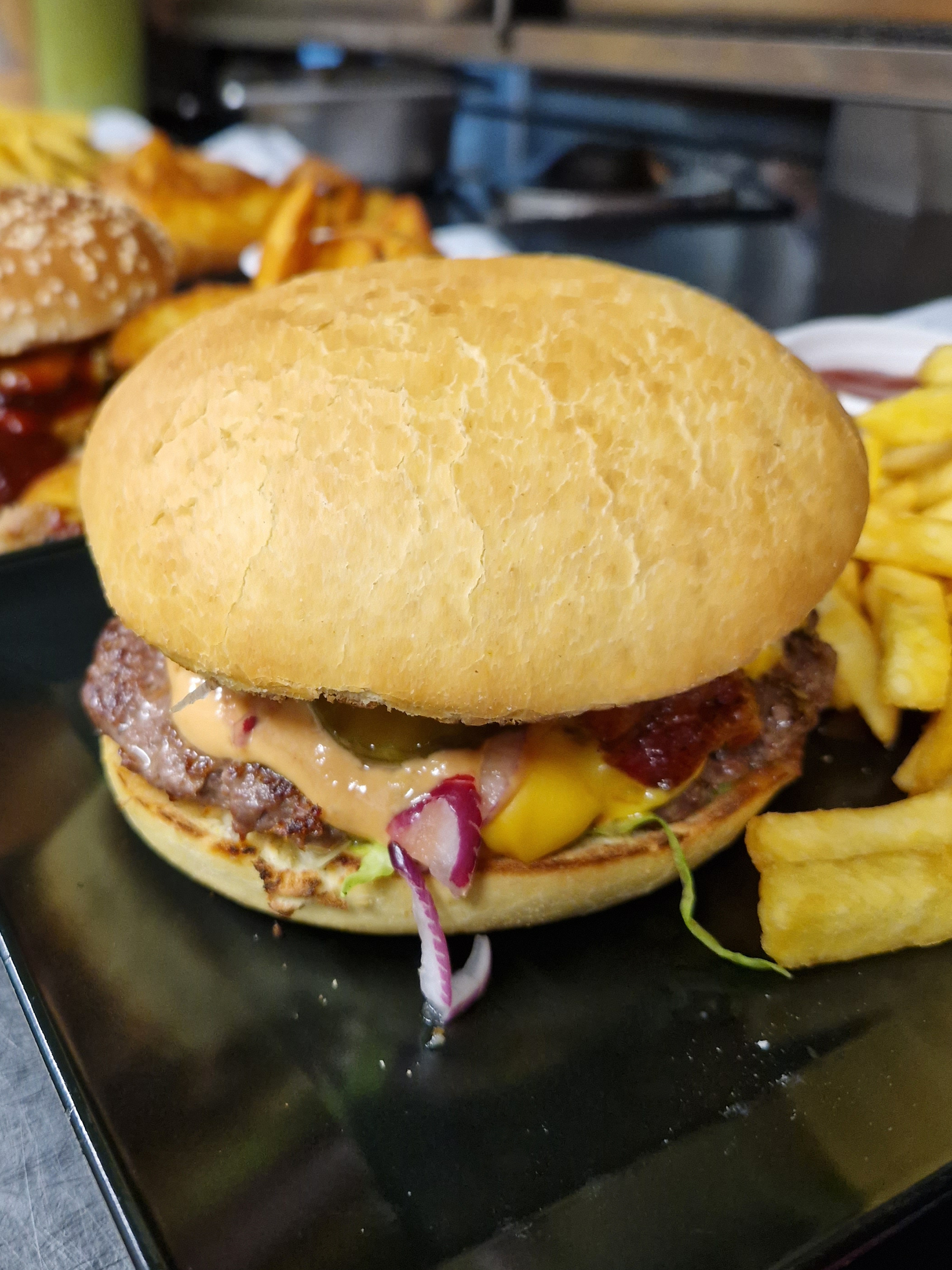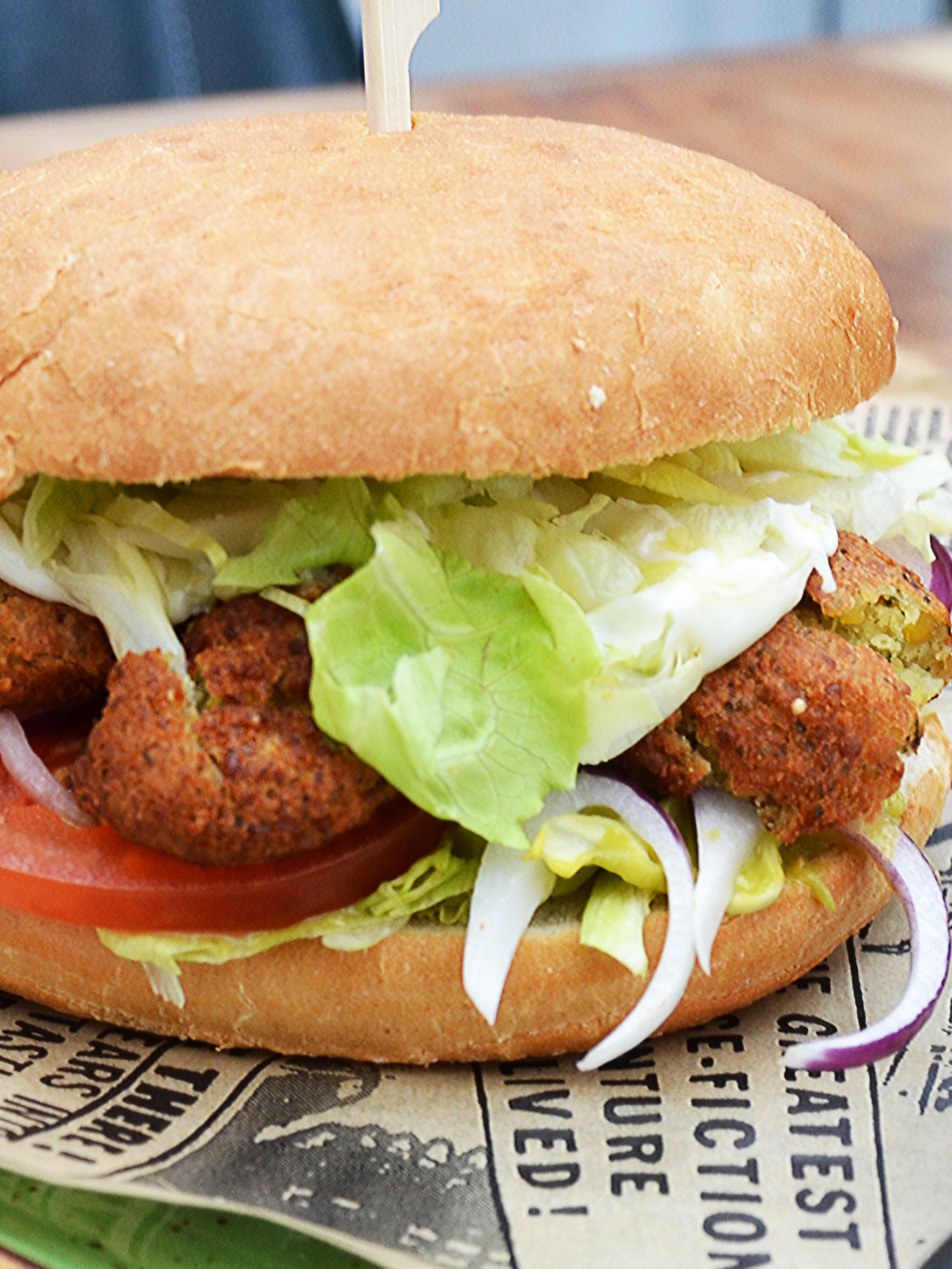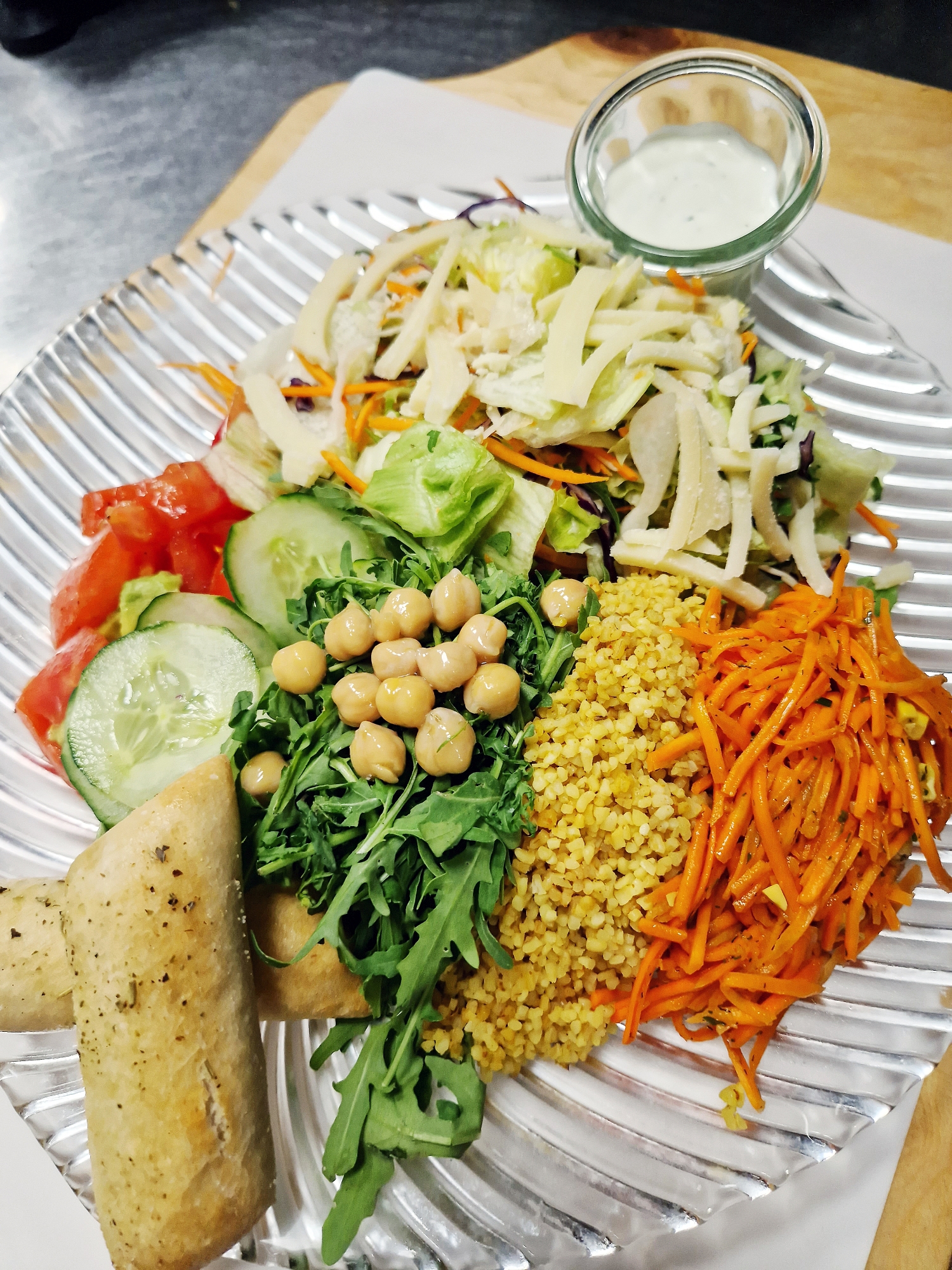 Hier habt Ihr eine große Auswahl an Burgern und Salaten zum mitnehmen.