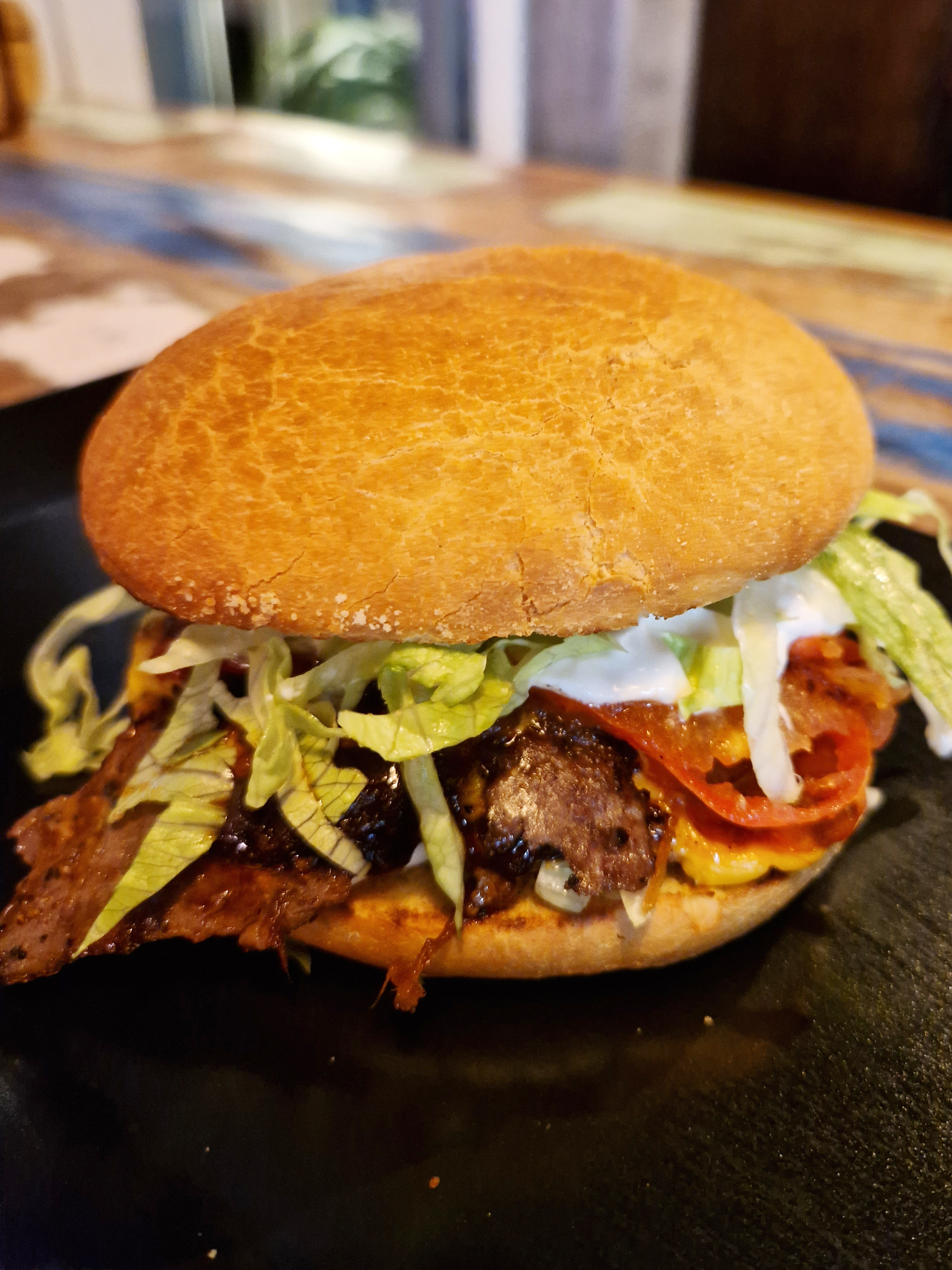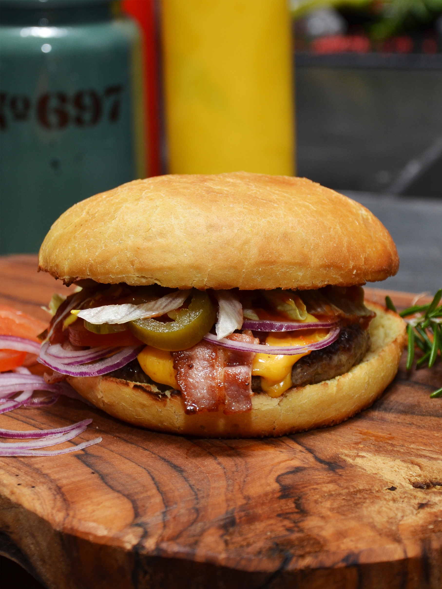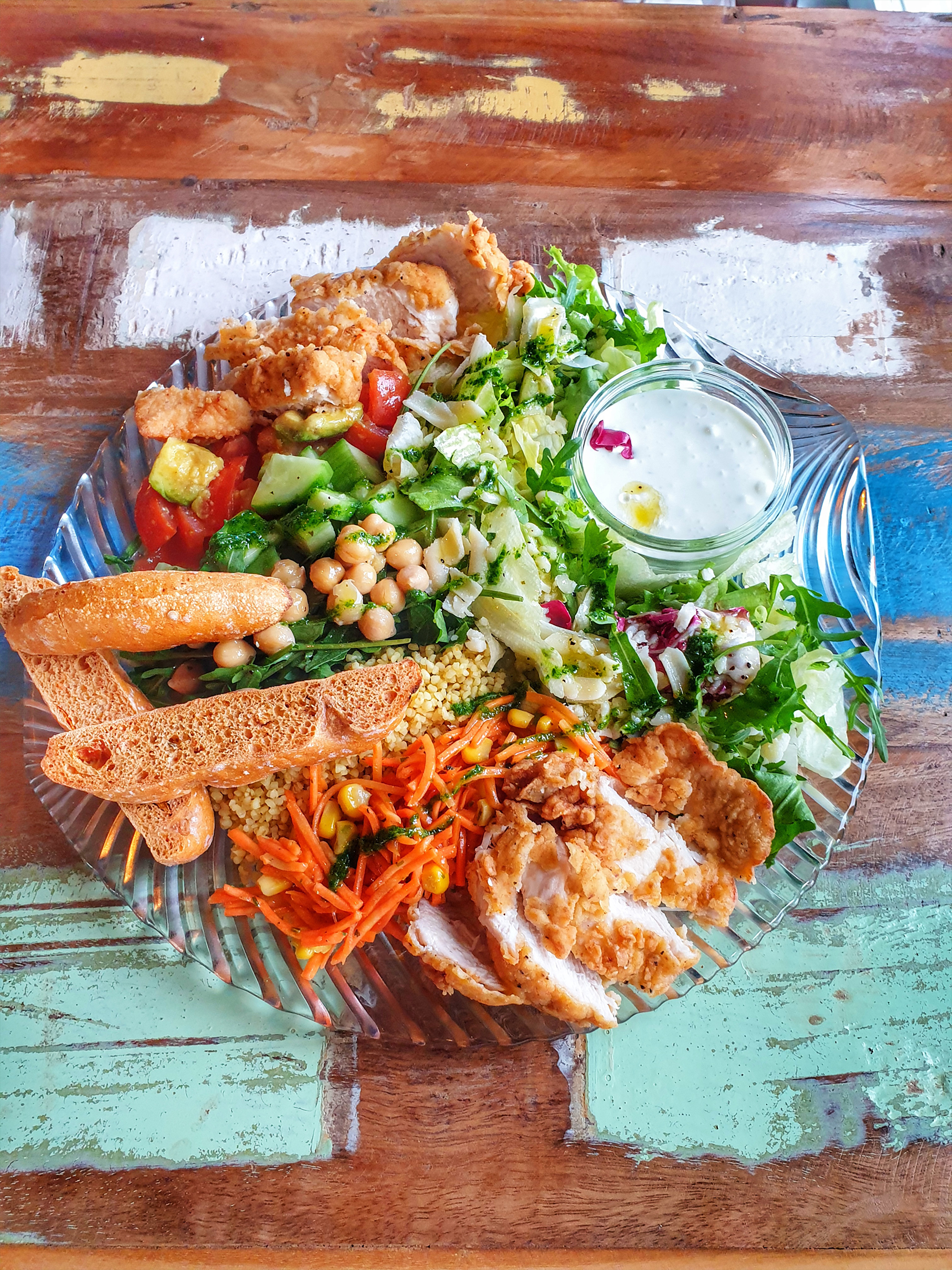 Hier habt Ihr eine große Auswahl an Burgern und Salaten zum mitnehmen.